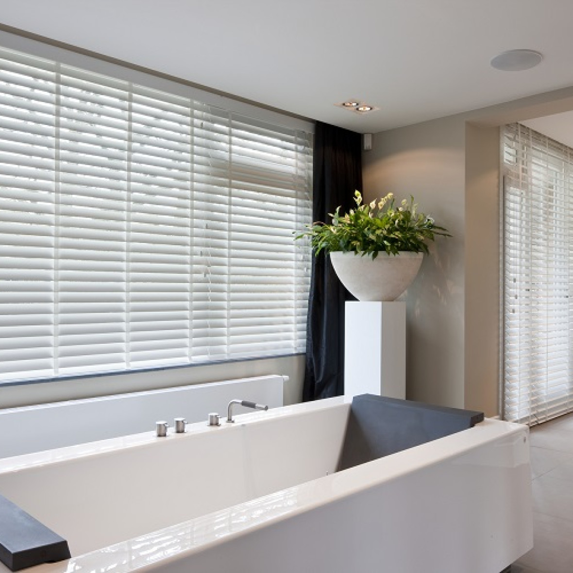 Des volets intérieurs ou des stores vénitiens en bois dans la salle de bain ? Une combinaison parfaite ! Les volets intérieurs, shutters, ainsi que les stores vénitiens en bois (blinds) de JASNO sont parfaits pour la salle de bain et vous donnent un sentiment relaxant dans cette belle pièce. Les volets intérieurs et les stores vénitiens en bois sont résistants à l'humidité et sont donc l'habillage parfaite des fenêtres de la salle de bains.